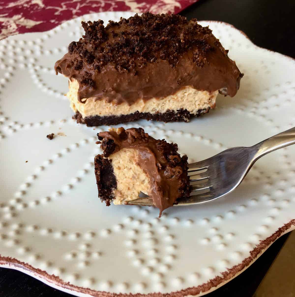 滿滿堅果香的杏仁餡+濃郁巧克力乳酪慕斯,搭配底部脆脆的巧克力餅乾底,上面再撒上有如奧利奧巧克力餅乾的巧克力脆片,冰冰涼涼,超適合當作飯後甜點!
